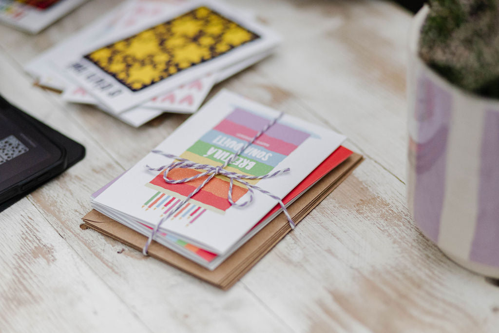 Priontaí ealaíne Éireannacha, cártaí beannachta, málaí tote agus go leor eile. Deartha & déanta i mBaile Átha Cliath ag Heather agus Peadar. Tá an páipéar a úsáidtear cairdiúil don thimpeallacht. Léigh tuilleadh fúinn anseo.